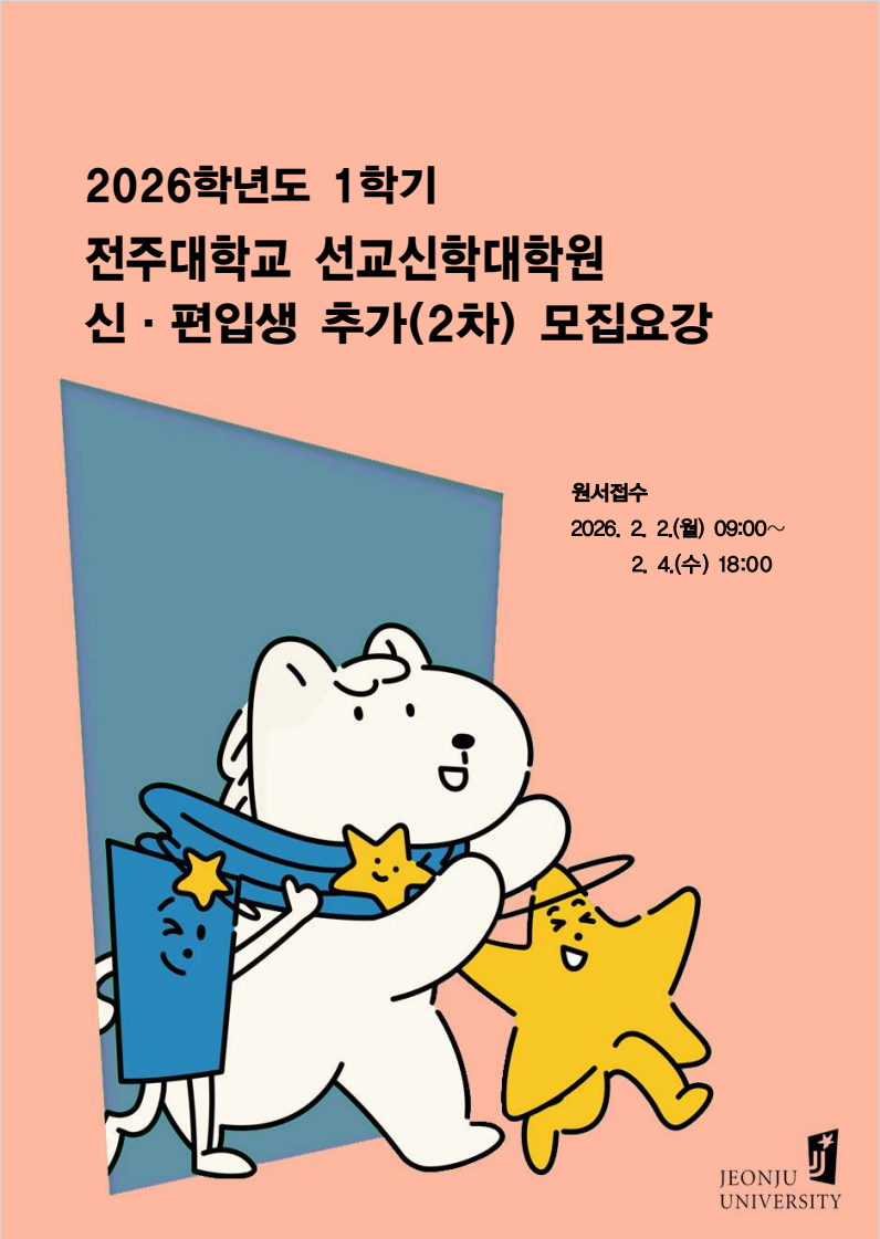 | [선교신학대학원] [모집중] 2026-1학기 선교신학대학원 신·편입생 특별전형(추가2차) 모집요강 | ||||||||||||||||||||||||||||||||||||||||||||||||||||||||||
