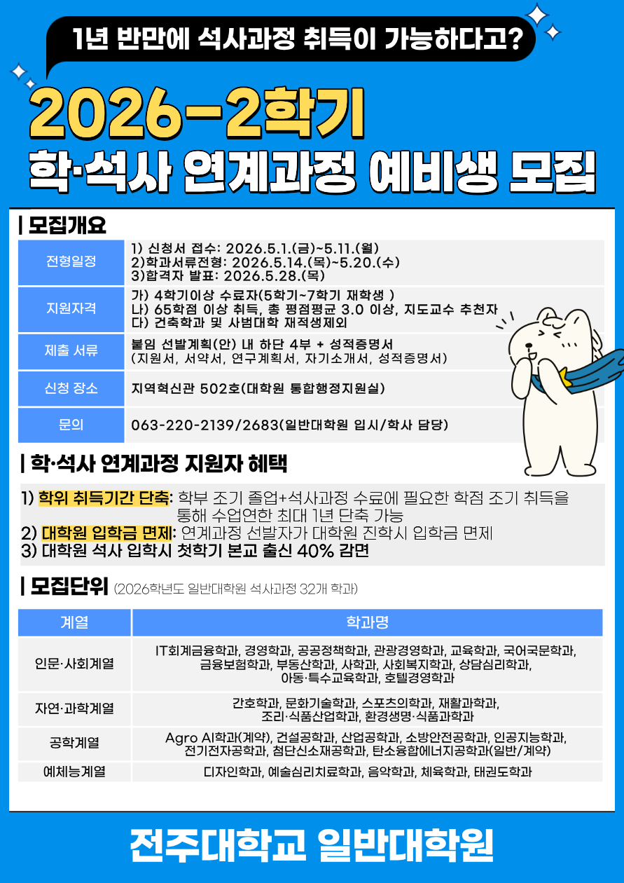 | [일반대학원] [모집예정] 2026-1학기 일반대학원 학·석사 연계과정 예비생 신청 안내 |