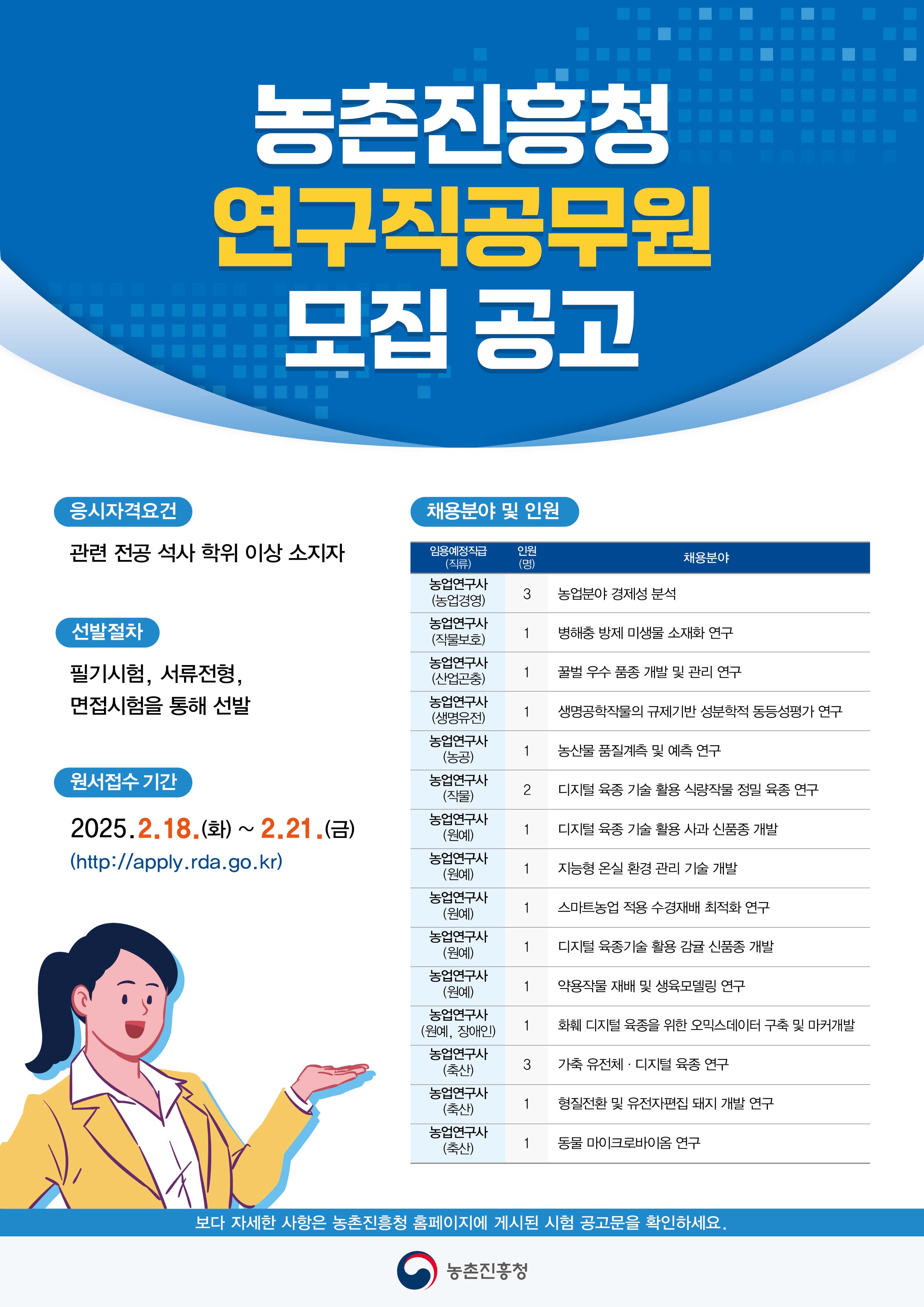 농촌진흥청 연구직 공무원 경력경쟁채용 공고